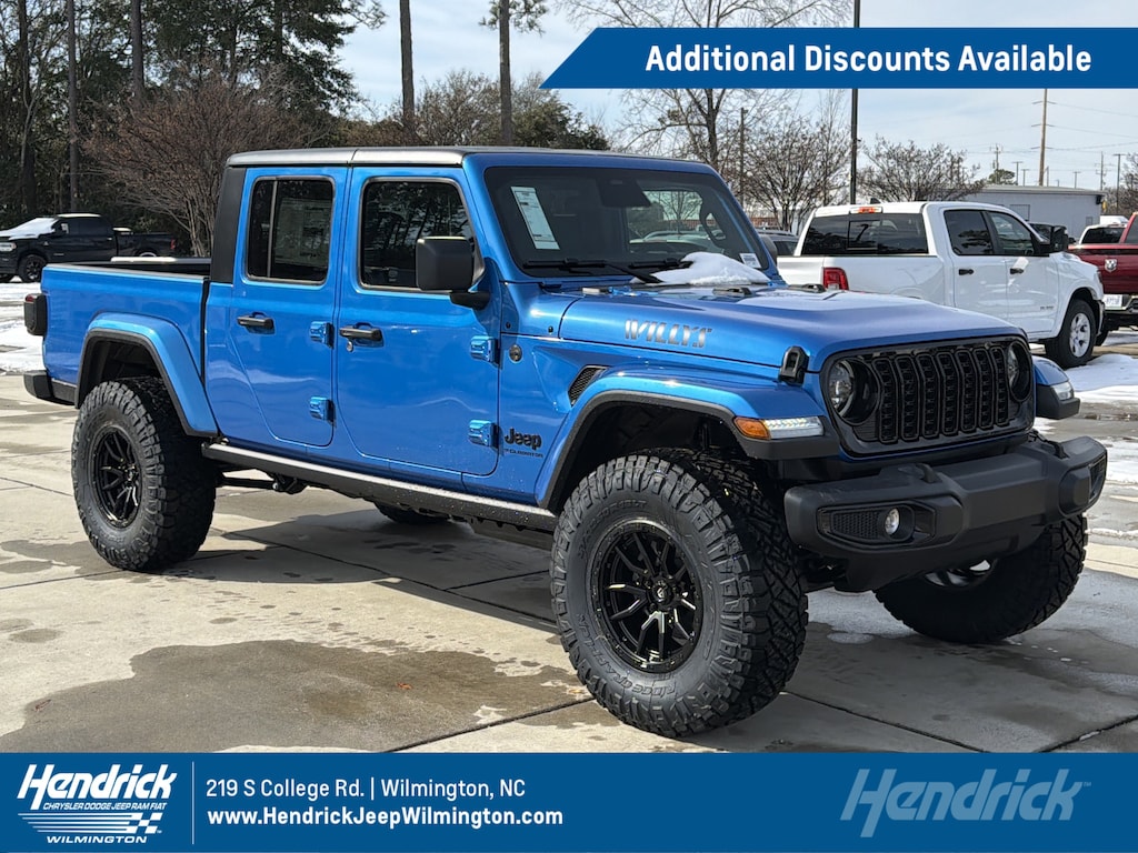 *Offer includes all dealer discounts and OEM incentives. Offer does not include tax, tag, title, fees, and other dealer installed options. Discount varies by model and stock number. Example stock #ZS35748. See dealer for details. Take retail delivery by 03/31/26. **0% APR financing for 72 months equals $13.89 per month per $1,000 financed for well-qualified buyers through Stellantis Financial Services regardless of down payment. Not all buyers will qualify. Not compatible with any other incentive programs or offers. Residency restrictions apply. Example Vehicle: 2025 Wagoneer S. Contact dealer for details. Must take delivery by 03/31/26. Financing and deferred monthly payments for well-qualified buyers when financed through Stellantis Financial Services. Not all buyers will qualify. Interest, if any, accrues from date of purchase. ***New 2025 Jeep Gladiator Sport S stock #ZS32127, $199/mo, 39 month lease, 10,000 miles/year, $3,999 down payment. With Approved Credit. Plus tax, tag, dealer installed accessories and dealer fees. See dealer for details. Must finance through Stellantis Financial Services and qualify for all applicable rebates including loyalty. Must take retail delivery by 03/31/26.