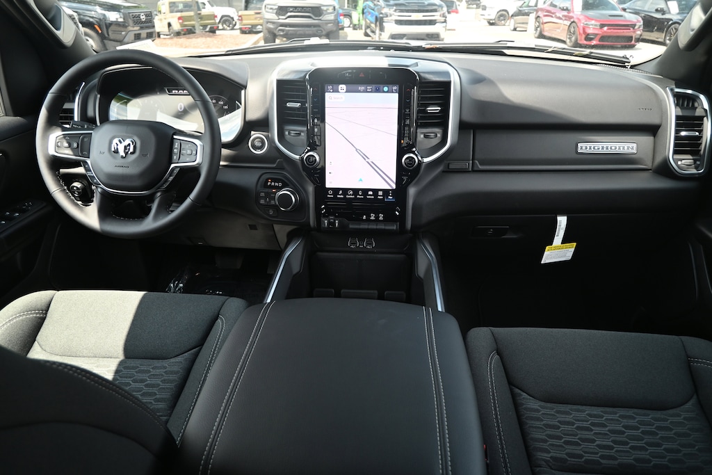 BIG HORN LEVEL 2 EQUIPMENT GROUP Google Android Auto®, Power Adjustable Pedals, Leather Wrapped Steering Wheel, 12 Touchscreen Display, Glove Box Lamp, Auto Power-Folding Mirrors, 115V Auxiliary Rear Power Outlet, Media Hub w/2 Charge Only USBs, Heated Front Seats, Security Alarm, Black Premium Power Mirrors, Apple CarPlay®, Premium Overhead Console, 9 Amplified Speakers w/Subwoofer, Remote Tailgate Release, 115V Auxiliary Power Outlet, LED Dome Lamp w/On/Off Switch, Universal Garage Door Opener, 2nd Row In Floor Storage Bins, Sun Visors w/Illuminated Vanity Mirrors, LED Footwell Lighting, Power 2-Way Driver Lumbar Adjust, Rear Window Defroster, Rear View Auto Dim Mirror, Rear Power Sliding Window, GPS Navigation, Overhead LED Lamps, Auto Dim Exterior Driver Mirror, SiriusXM w/360L, ENGINE: 3.0L I6 HURRICANE SO TWIN TURBO ESS Aux Battery, Secondary Active Grille Shutters, 700 Amp Maintenance Free Battery, Active Noise Control System, GVWR: 7,100 lbs, 3.55 Rear Axle Ratio, Dual Rear Exhaust w/Bright Tips, Start-Stop Dual Battery System, 230 Amp Alternator, WHEELS: 20 X 9 ALUMINUM CHROME CLAD (WRD) Tires: 275/55R20 All Season LRR, Nexen Brand Tires, WHEEL TO WHEEL SIDE STEPS, BLACK, DELUXE CLOTH BUCKET SEATS Bucket Seats, Full Length Floor Console, Power Adjust 8-Way Driver Seat, Rear Center Armrest, Power 2-Way Driver Lumbar Adjust, TRANSMISSION: 8-SPEED AUTOMATIC (8HP75).